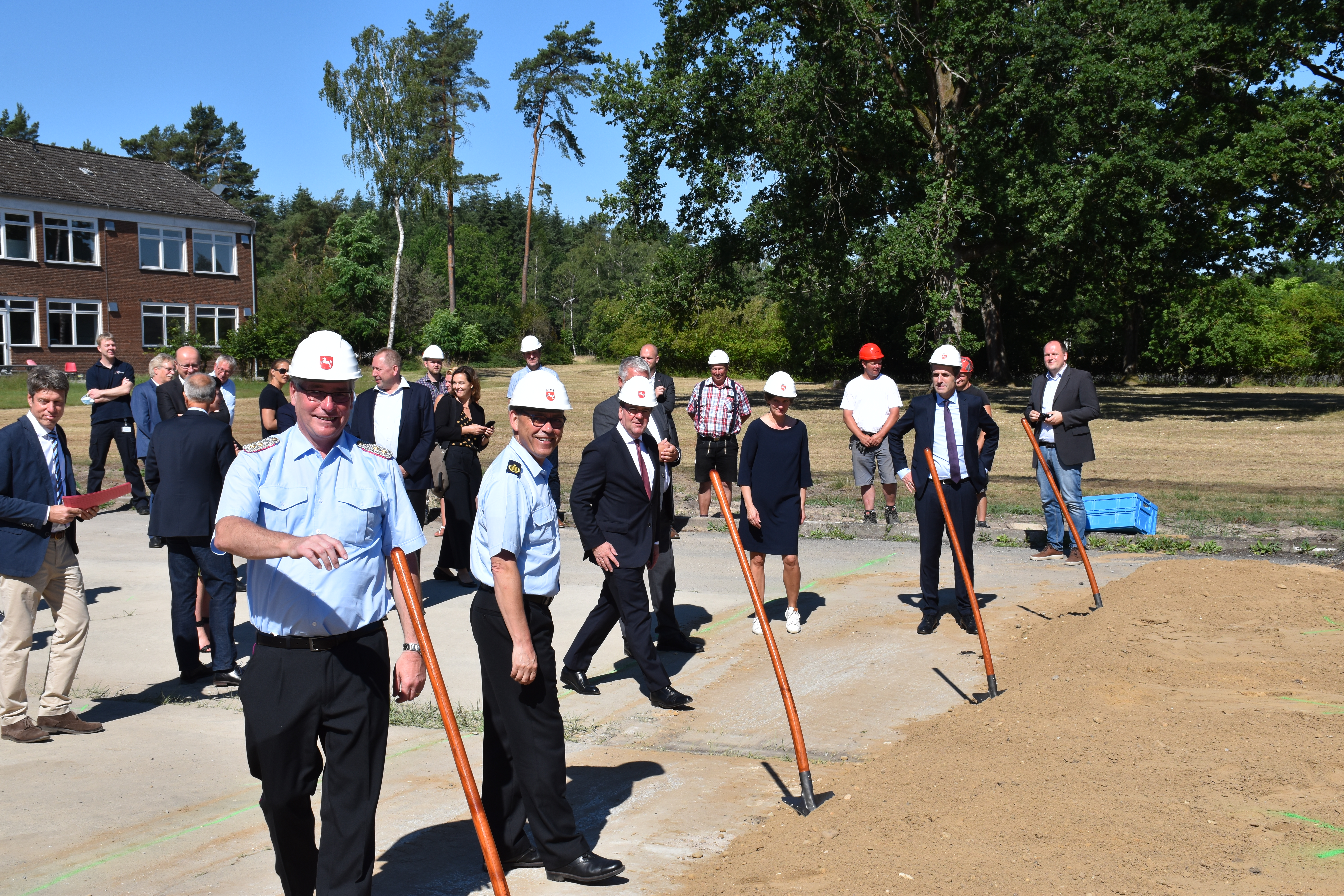 Heute (24. Juni 2020) fand der offizielle Spatenstich für die Errichtung des neuen Wirtschaftsgebäudes und die Übergabe von zwei Simulations- und Übungsgebäuden durch den Niedersächsischen Minister für Inneres und Sport, Boris Pistorius, an der NABK in Celle-Scheuen statt.