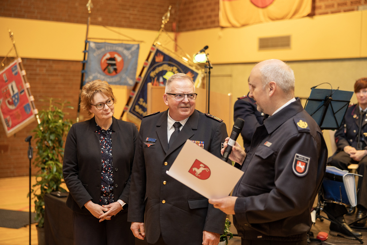 Am Samstag (31. Januar) wurde Regierungsbrandmeister Thomas Friedhoff im Rahmen einer Feierstunde in Otterndorf, nach rund zwölf Jahren Tätigkeit, durch die Niedersächsische Ministerin für Inneres, Sport und Digitalisierung, Daniela Behrens, aus dem Dienst als Ehrenbeamter der Landes Niedersachsen verabschiedet.