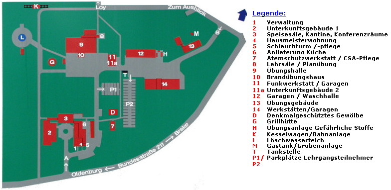 Lage und Grundbesitz der Landesfeuerwehrschule Loy