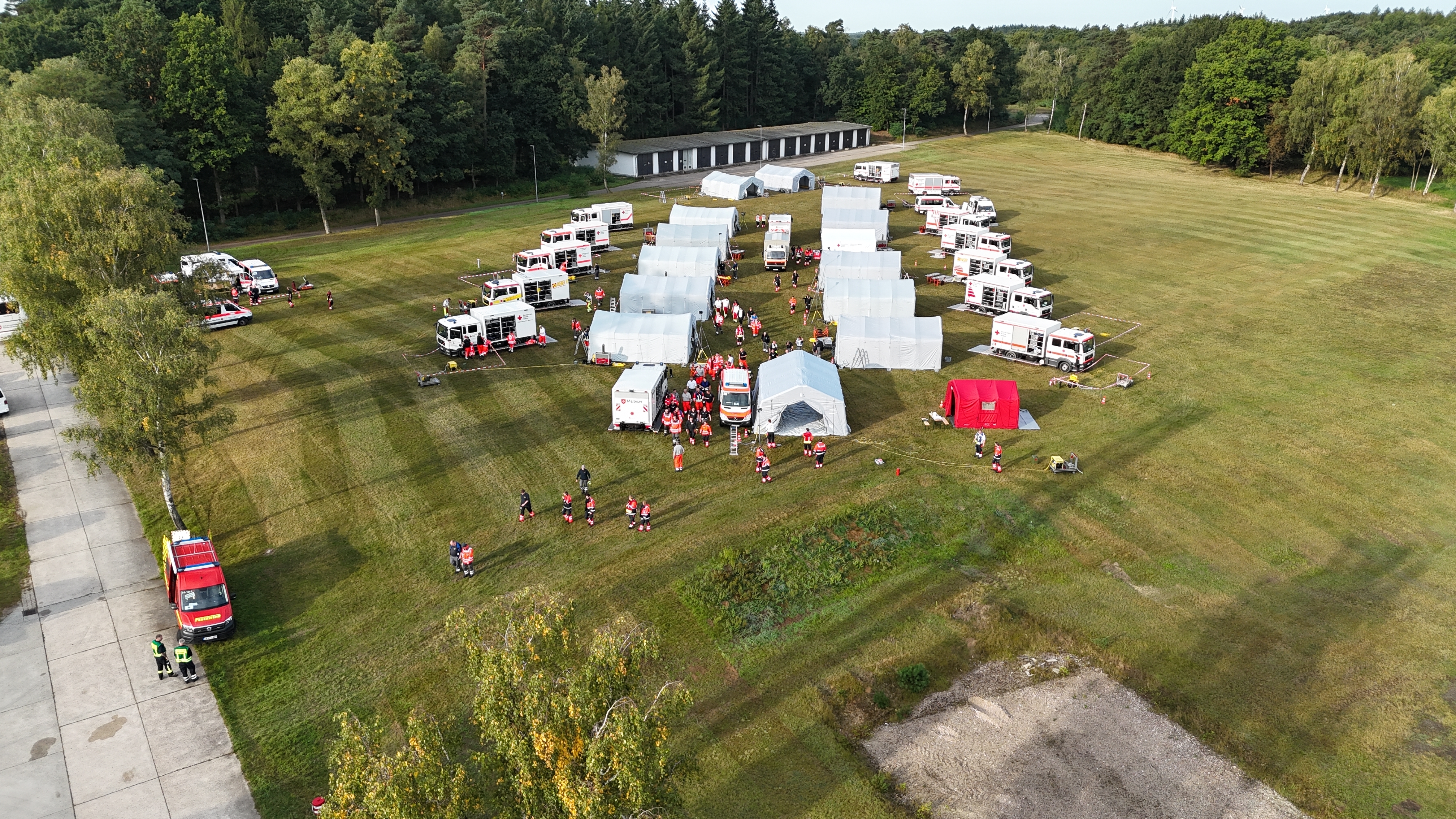 Vom 19. bis 21. September 2025 fand in Celle-Scheuen die groß angelegte Katastrophenschutzübung „MTFEx25“ statt. Im Mittelpunkt standen die Medizinischen Task Forces (MTF) 08 und 10, die mit rund 150 Einsatzkräften ein anspruchsvolles Szenario bewältigten. Dabei wurden insbesondere die Führungsgruppe, die Behandlungsbereitschaft sowie die Patiententransportgruppe umfassend beübt. Die Einheiten Logistik und Dekontamination befinden sich weiterhin im Aufbau. Erstmals wurden die MTF durch eine Rettungshundestaffel und einen SAR-Hubschrauber unterstützt, wodurch die Zusammenarbeit mit weiteren Einsatzkräften praxisnah trainiert werden konnte.