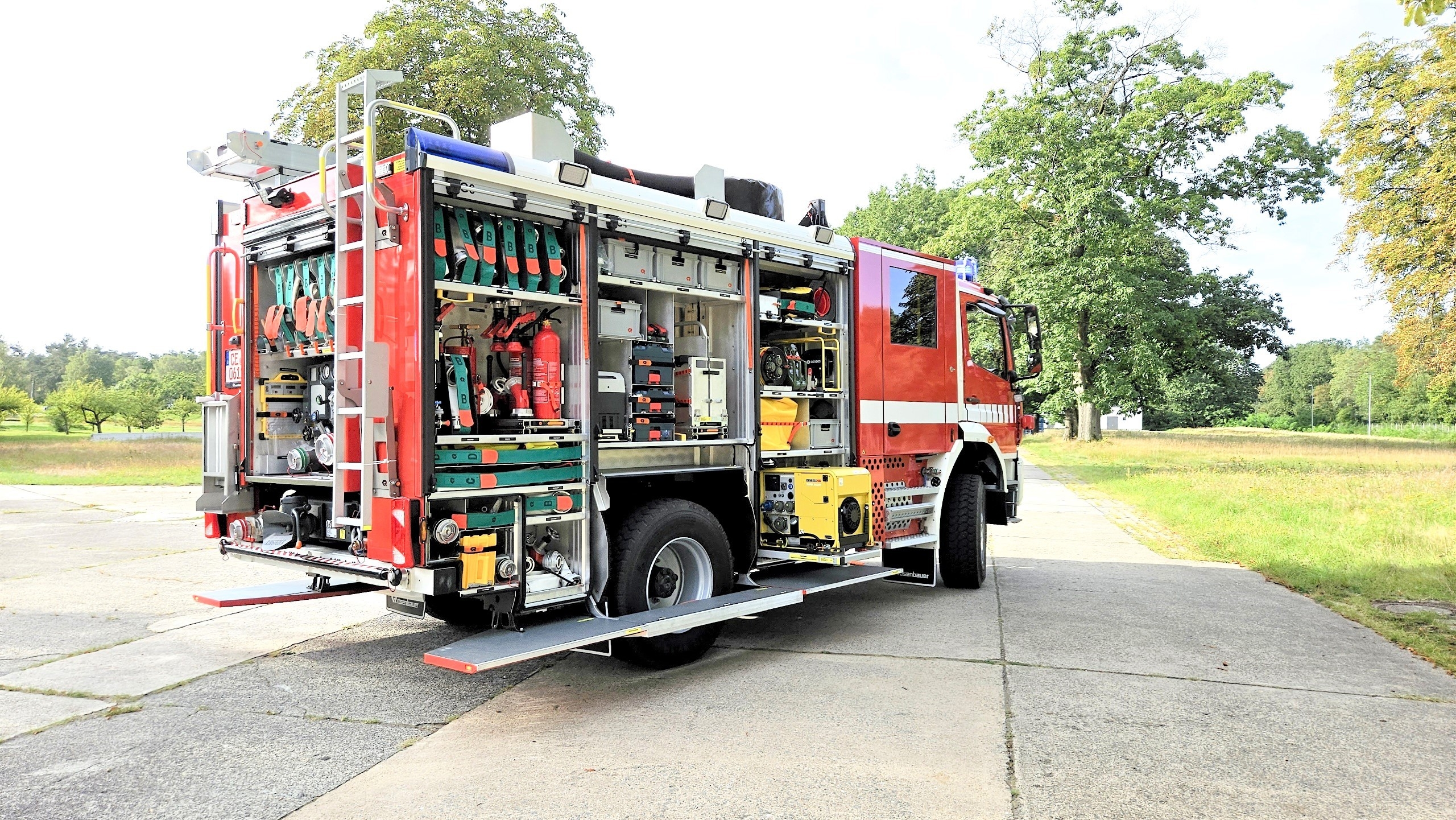 Im Bereich der chemischen, biologischen, radiologischen und nuklearen Gefahrenabwehr (CBRN) stehen Gerätewagen Dekontamination Personen (GW Dekon P), CBRN-Erkundungswagen (CBRN-ErkW) und CBRN-Messleitkomponenten (CBRN MLK) bereit, um eine effektive Erkennung und Bekämpfung von Gefahrstoffen zu ermöglichen.