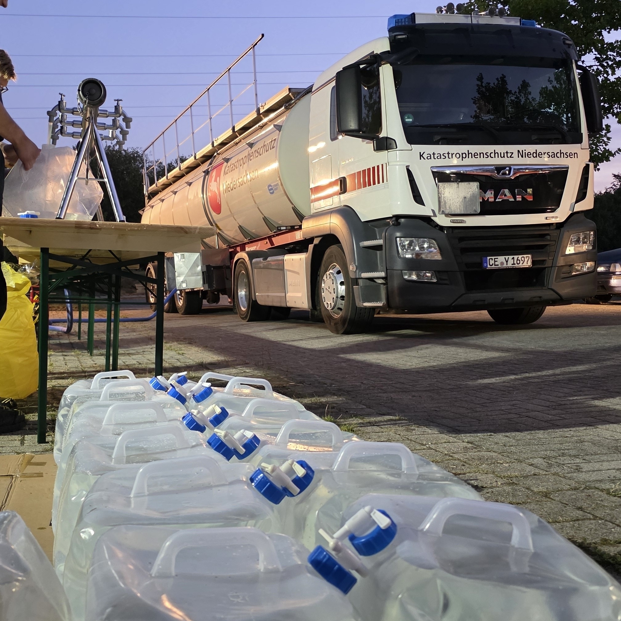 Hitzewellen, Dürren, Überschwemmungen – der Klimawandel verursacht zunehmend Wetterextreme, die unsere Trinkwasserversorgung erheblich beeinträchtigen können. Mit der steigenden Gefahr von Versorgungsengpässen wächst auch die Bedeutung einer belastbaren Trinkwassernotversorgung. Aus diesem Grund stellt das Land Niedersachsen die zentrale Landeseinheit (ZLE) Trinkwassernotversorgung auf. Die ZLE Trinkwassernotversorgung soll die kommunalen Wasserversorger im Ereignisfall unterstützen, indem Trinkwasser für Betroffene, begünstigte Bedarfsträger sowie Einheiten und Einrichtungen des Katastrophenschutzes bereitgestellt wird. Zu diesem Zweck verfügt der Trinkwassernotversorgungszug über folgende Fähigkeiten: